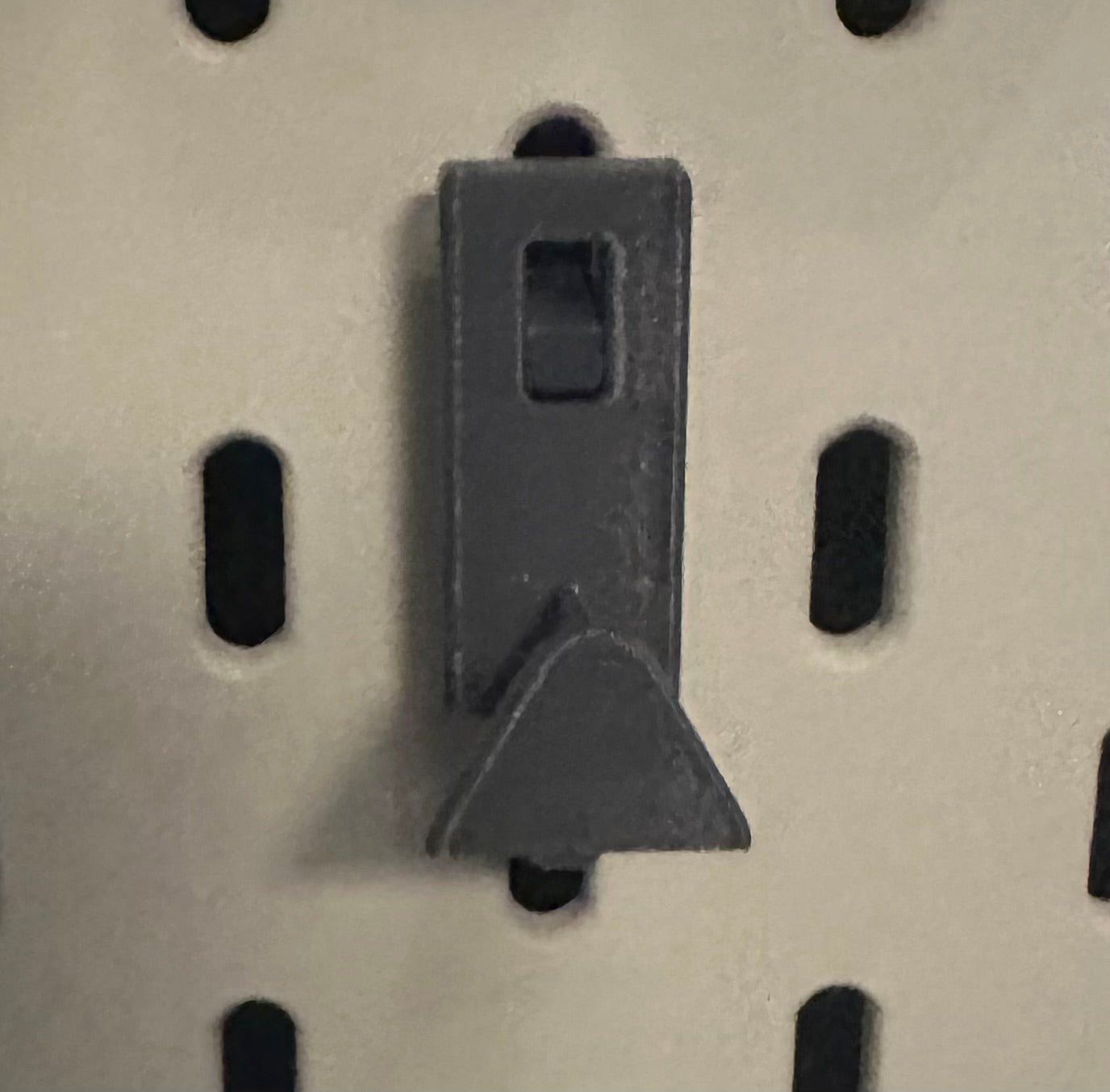 The hooks securely hold model cutters / sprue cutters and similar hand tools, helping keep your workspace tidy and reducing clutter on your desk. Designed for IKEA SKADIS and SKADIS-style peg boards, they slot straight in with no permanent fixing required.